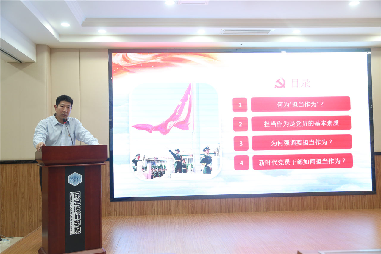 學院院長、黨委書記崔欣為全體黨員上了一堂題為“敢擔當、有作為”黨課。