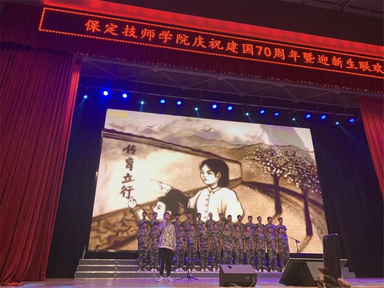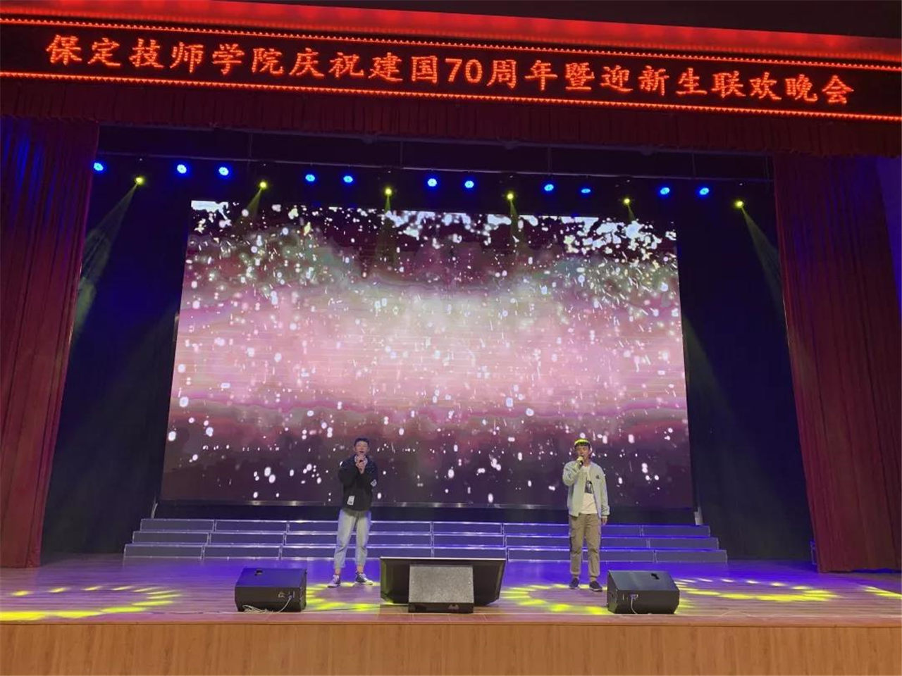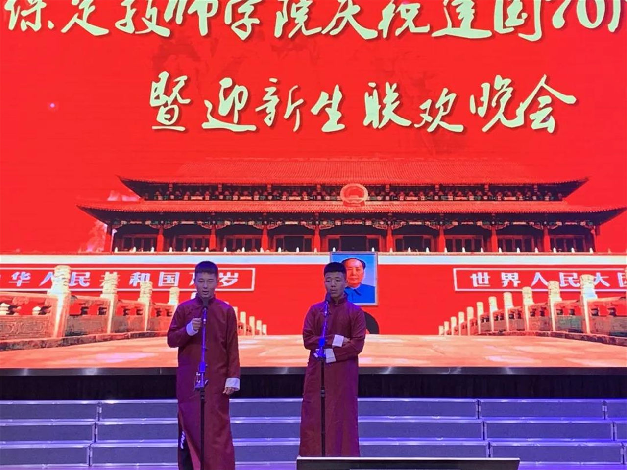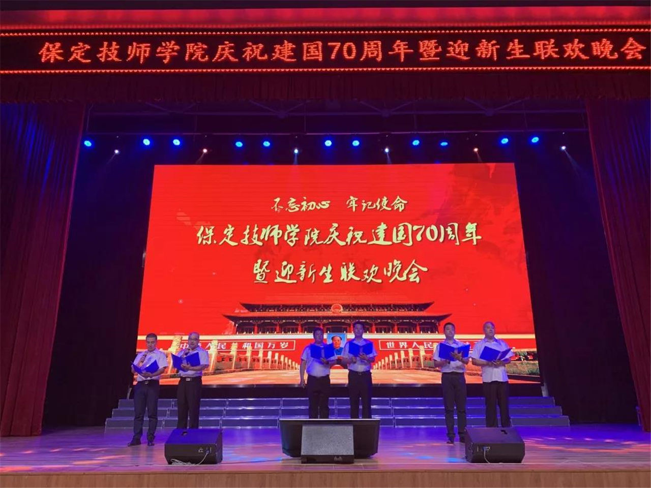 青春奮進(jìn)新時(shí)代,同心共筑中國夢。為熱烈慶祝新中國成立70周年,迎接2019級新同學(xué),9月24日晚,我院在禮堂舉行慶祝建國七十周年暨迎新生聯(lián)歡晚會(huì)。