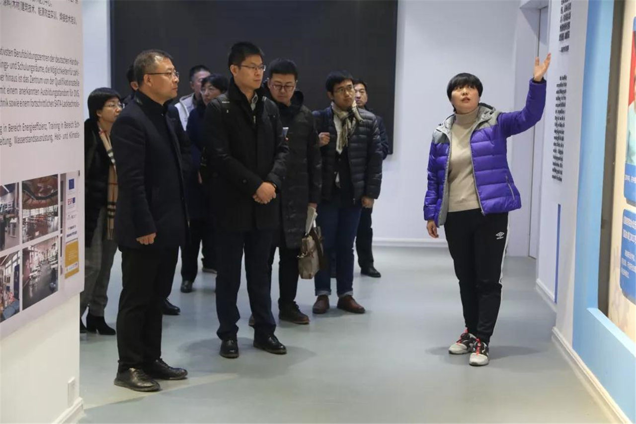 李光輝總經(jīng)理一行分別到中德職業(yè)合作項(xiàng)目展覽館、電氣實(shí)訓(xùn)車(chē)間、鉗工實(shí)訓(xùn)車(chē)間參觀,專(zhuān)業(yè)老師介紹了有關(guān)情況。