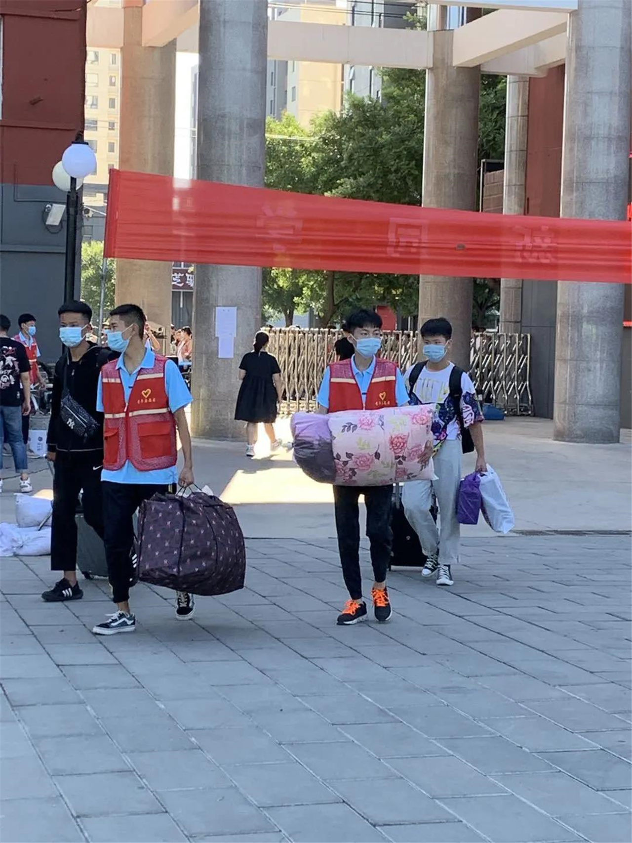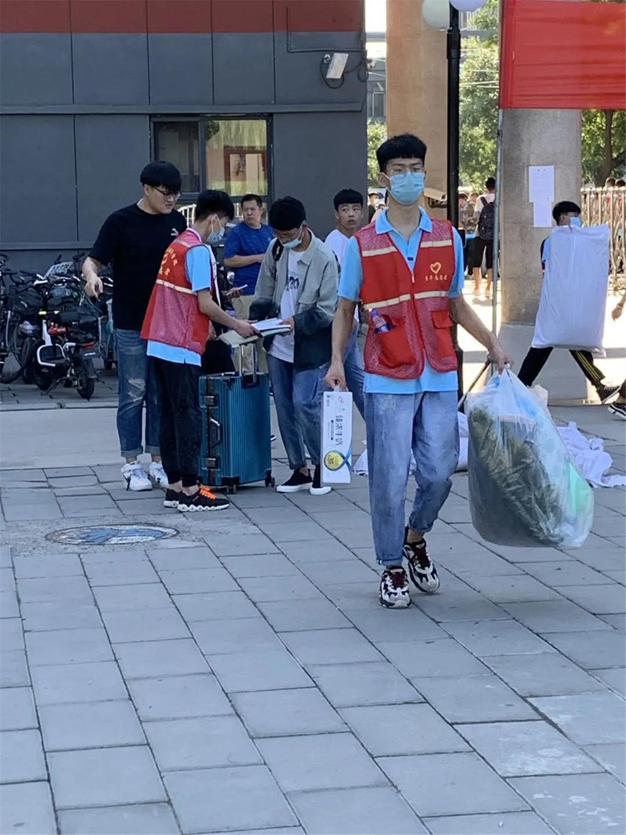 由于疫情原因,今年的入學(xué)不允許家長(zhǎng)進(jìn)入校門了,學(xué)校特意安排了志愿者幫助入學(xué)的新同學(xué),搬運(yùn)行李,解答疑問,辦理繳費(fèi)、宿舍登記等入學(xué)手續(xù),只要有新生的地方,就會(huì)看到他們的身影。