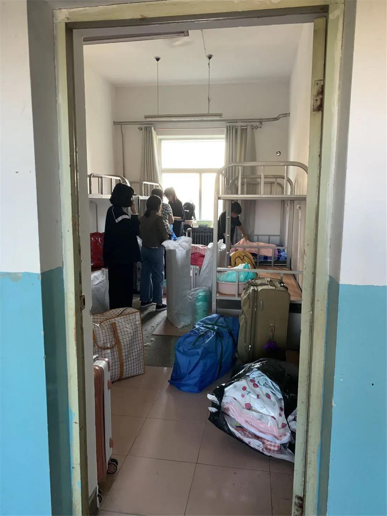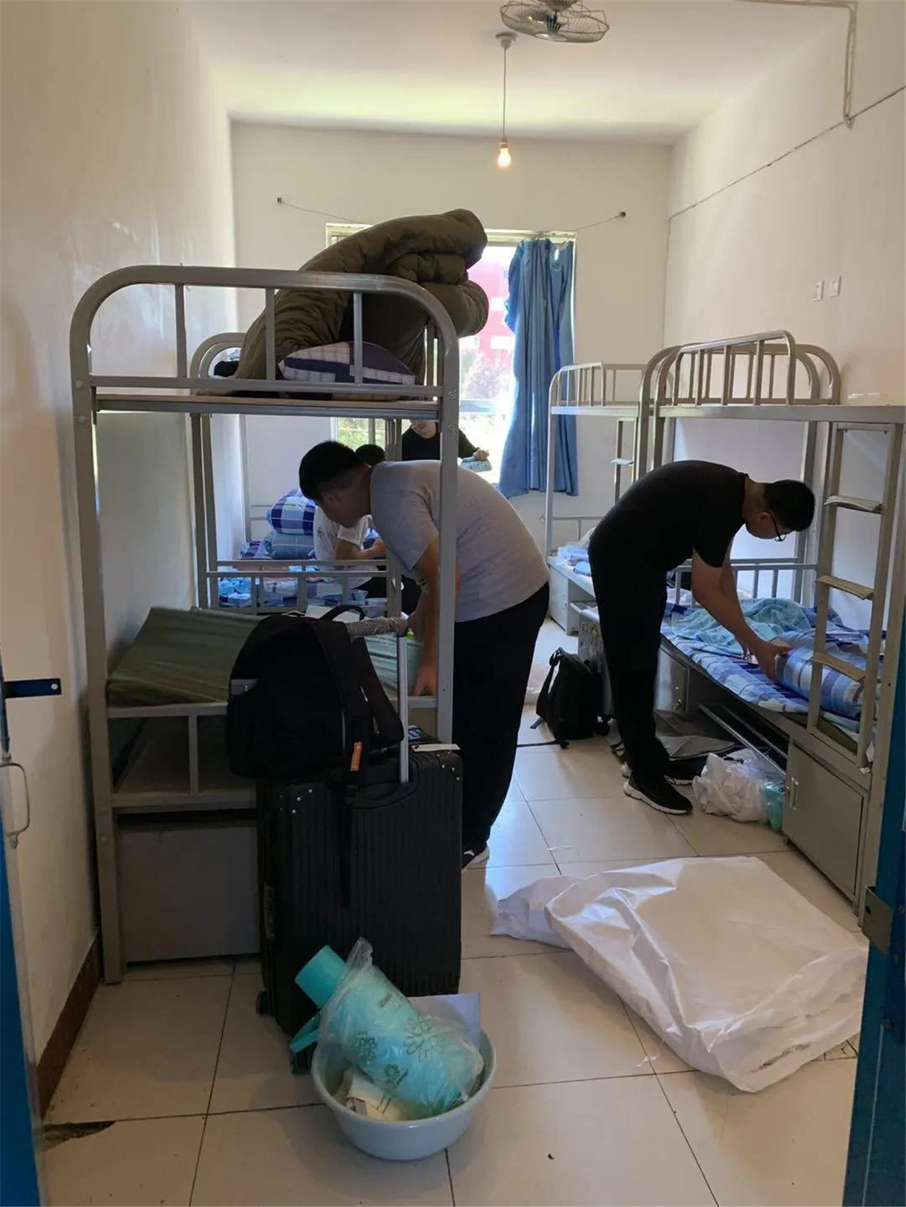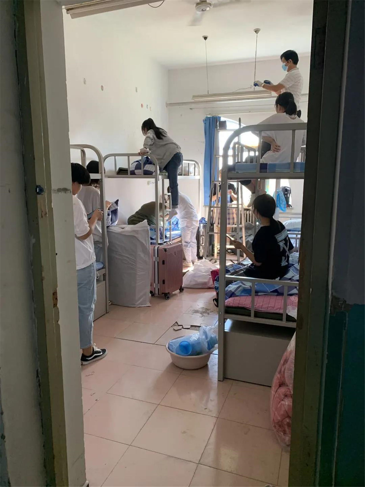 利用超長(zhǎng)假期,學(xué)校對(duì)宿舍樓進(jìn)行了統(tǒng)一裝修。開學(xué)前,學(xué)校保衛(wèi)處已完成了安全隱患排查,后勤處清理了環(huán)境衛(wèi)生,每日進(jìn)行消殺,為新生們筑起了安全屏障。同學(xué)們?cè)谥驹刚叩囊龑?dǎo)下領(lǐng)取生活用品,找到宿舍,開始新“家”。