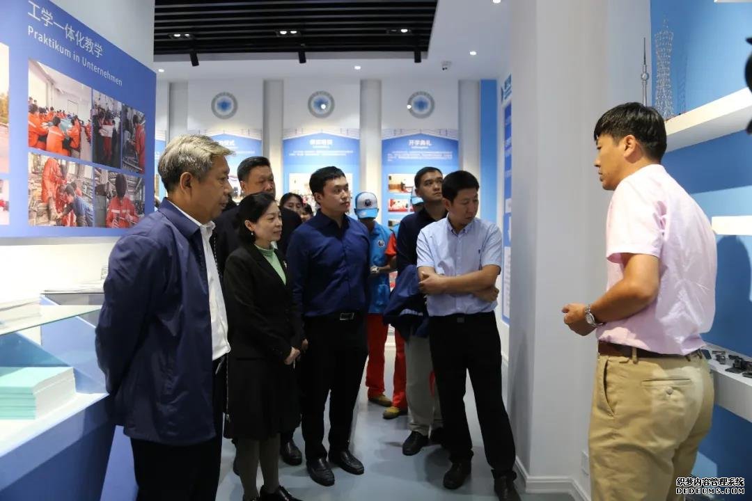 錢司長(zhǎng)一行首先到中德職業(yè)教育合作項(xiàng)目展館參觀,崔欣院長(zhǎng)及展館負(fù)責(zé)老師介紹我院中德合作的有關(guān)情況。