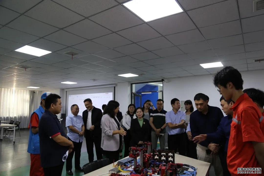 錢司長(zhǎng)一行然后到電氣實(shí)訓(xùn)車間觀摩學(xué)生上課,實(shí)訓(xùn)車間的老師介紹相關(guān)情況。