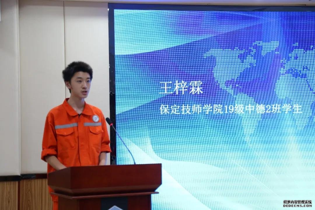 中德機(jī)電一體化合作班學(xué)生王梓霖匯報(bào)了在中德班的學(xué)習(xí)體會(huì)。