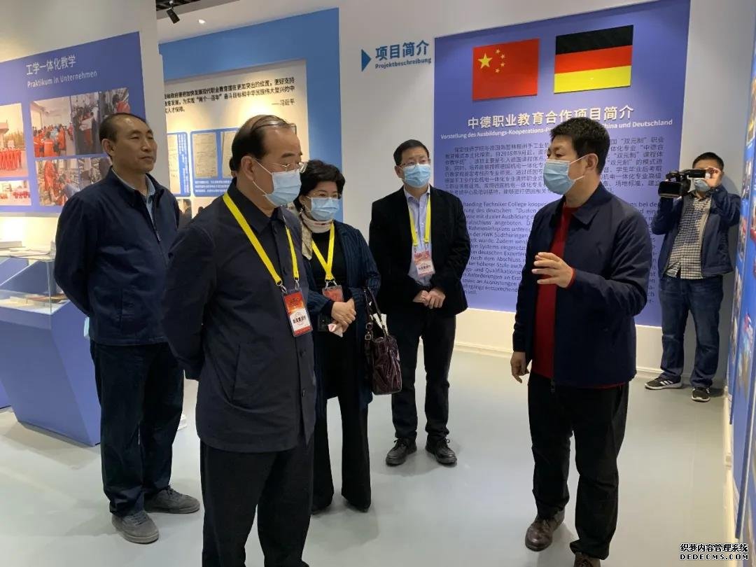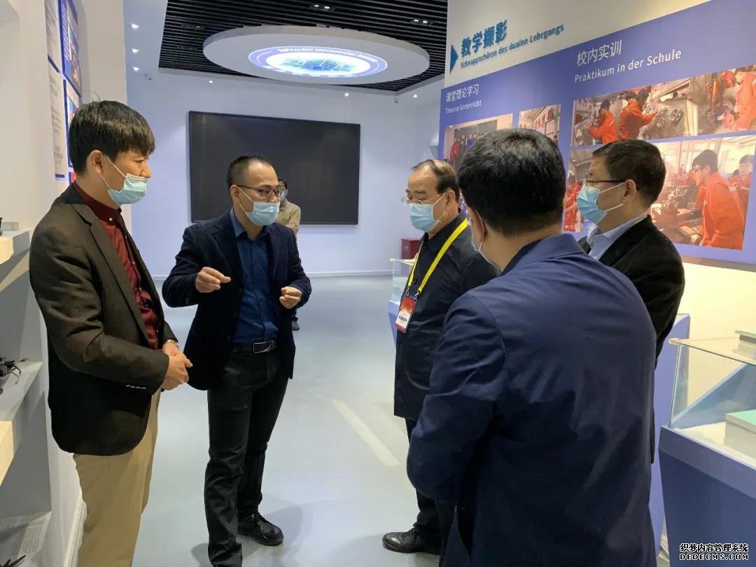 首先,彭廳長到中德職業(yè)教育合作項目展覽館參觀,崔欣院長及展館負責(zé)老師介紹我院中德合作的有關(guān)情況。