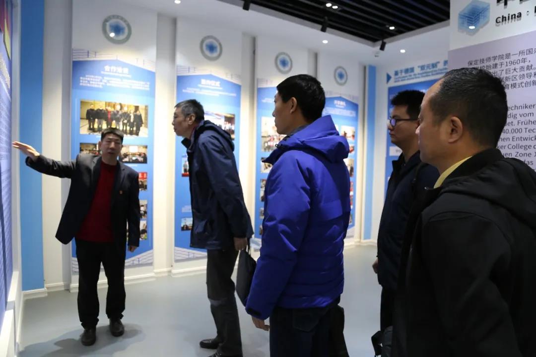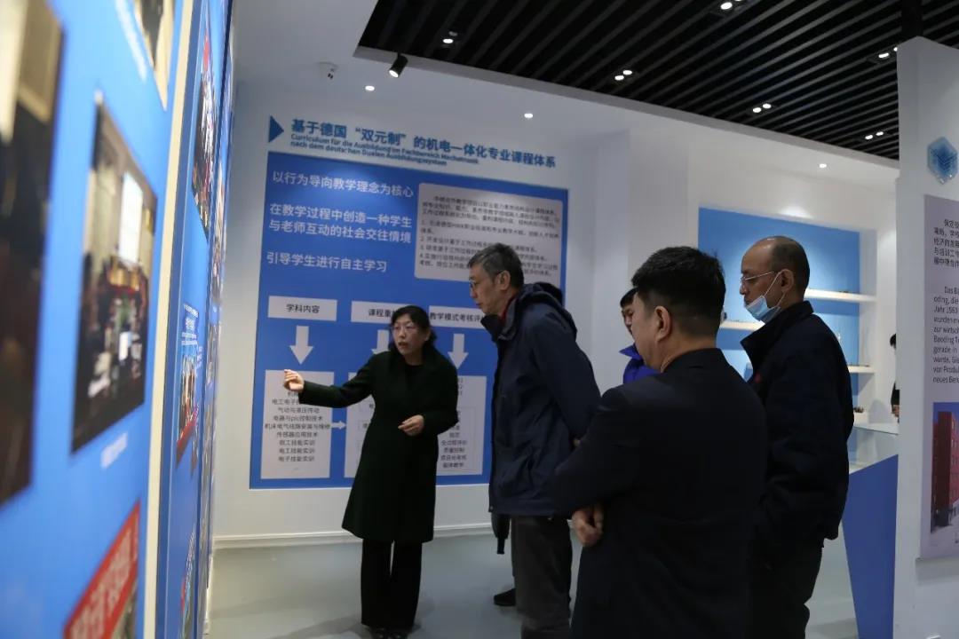 首先,陳銘教授一行到中德職業(yè)合作項目展覽館參觀,崔欣院長及展館負責(zé)老師介紹了我院中德合作的有關(guān)情況,并對學(xué)生作品及工作頁進行了展示。