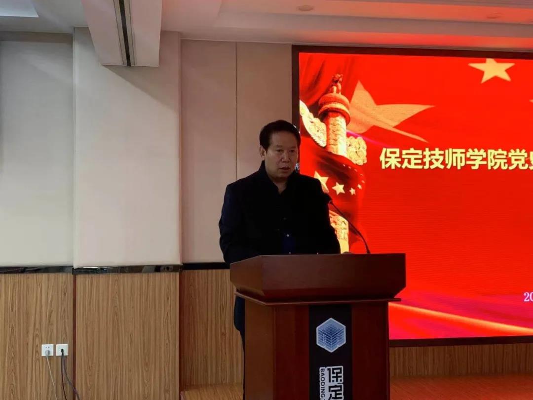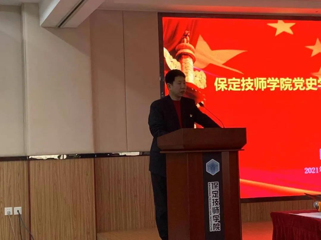 學(xué)院黨委副書記劉濟(jì)新宣讀《中共保定技師學(xué)院黨委關(guān)于開展黨史學(xué)習(xí)教育的實(shí)施方案》。