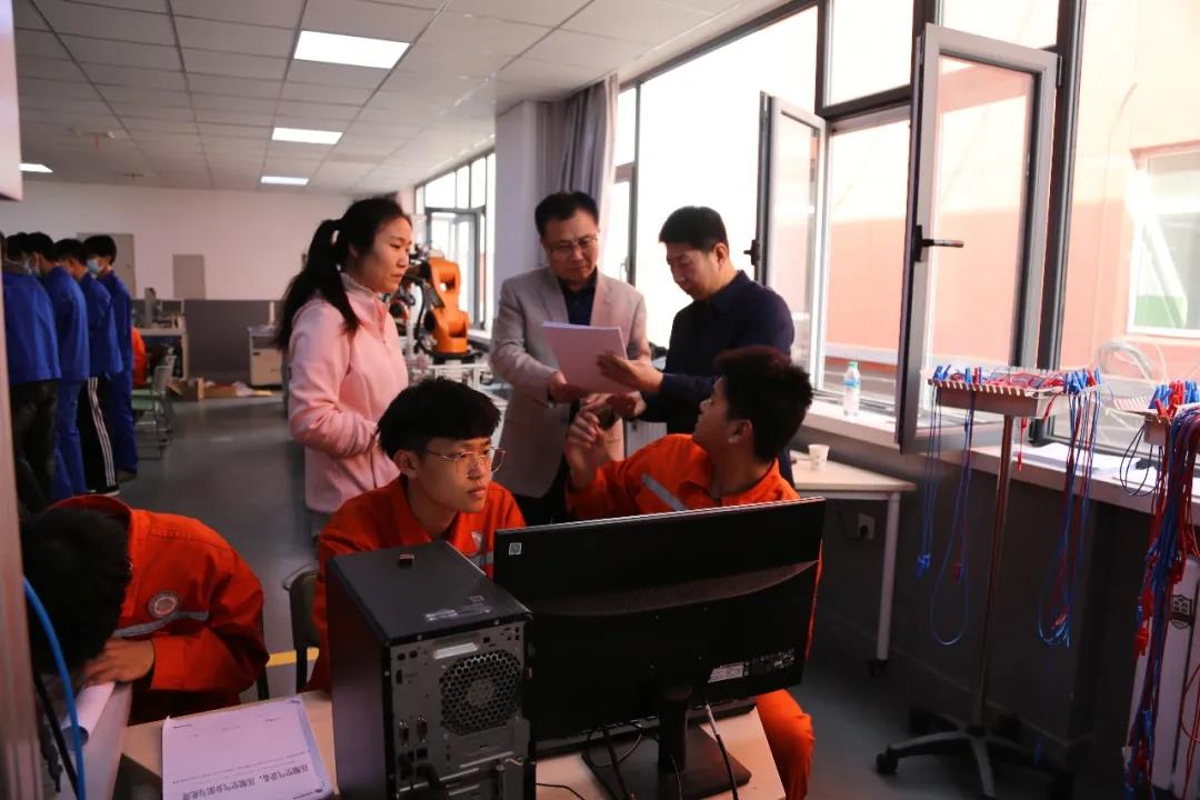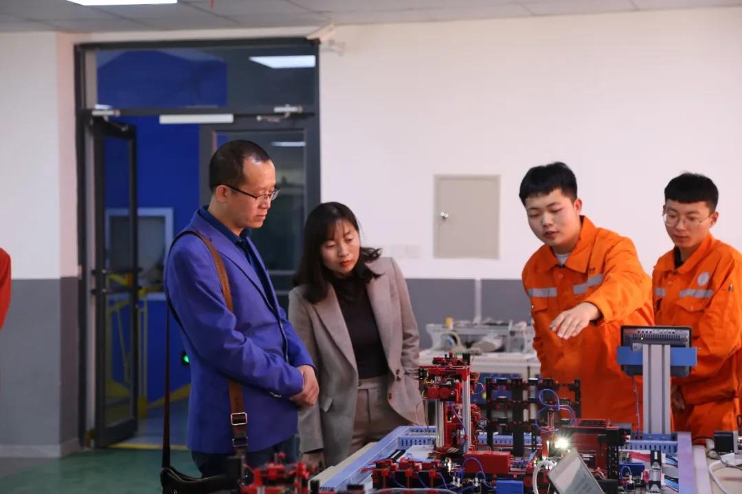 然后,到電氣實(shí)訓(xùn)車間觀摩學(xué)生上課,授課老師及學(xué)生介紹了設(shè)備的使用情況。