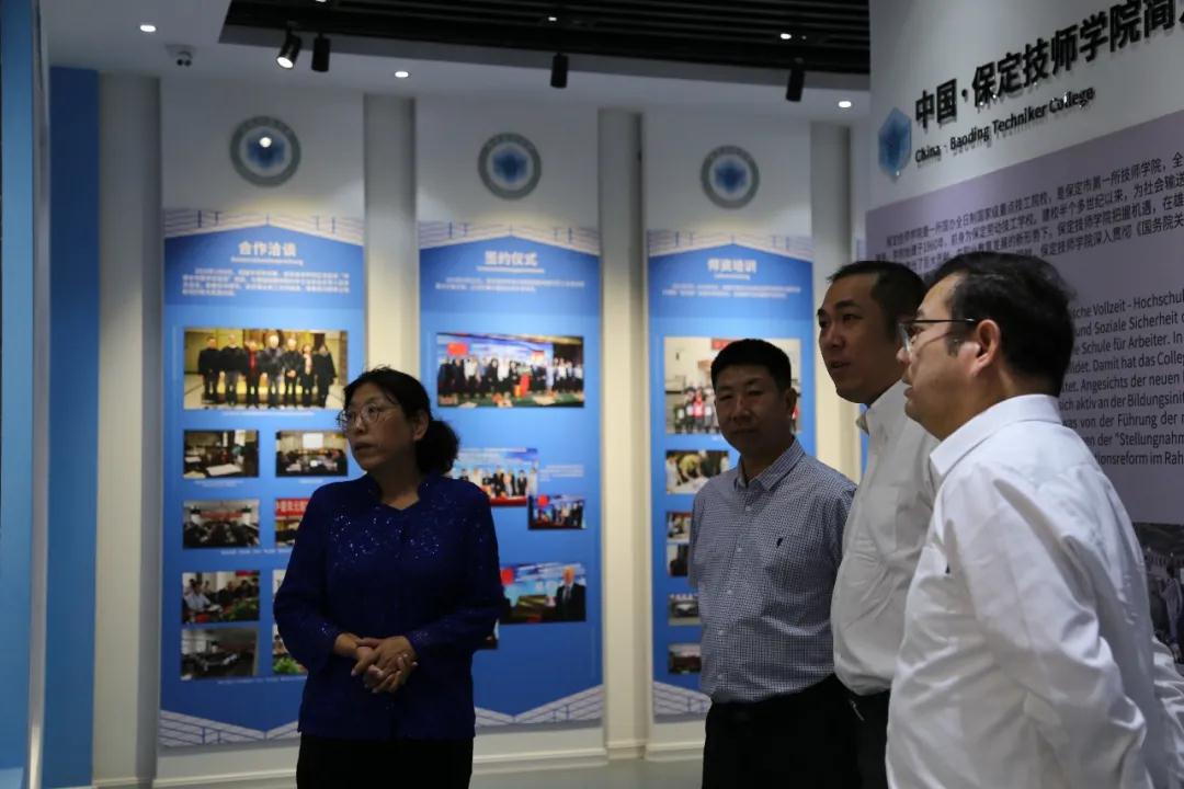 首先,到中德職業(yè)教育合作項目展覽館參觀。院長助理齊新英介紹了我院中德合作的由來和雙元制教學法在我院的應用和推廣情況。