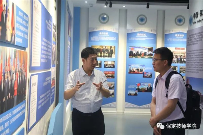 首先到中德職業(yè)合作項(xiàng)目展覽館參觀,崔欣院長(zhǎng)介紹中德合作的歷程和成效。然后到電氣實(shí)訓(xùn)車(chē)間參觀,與實(shí)習(xí)學(xué)生進(jìn)行交流,了解中德機(jī)電一體化實(shí)驗(yàn)班的中期考試以及學(xué)生參賽備賽情況。