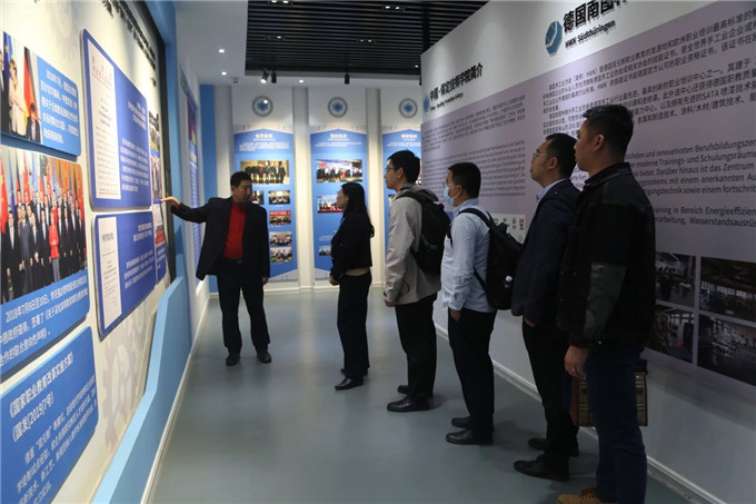 首先,到中德職業(yè)合作項目展覽館參觀,崔欣院長介紹中德合作的歷程和成效。