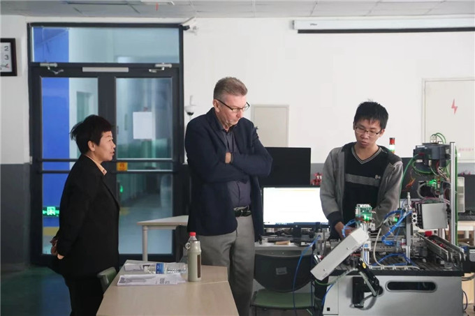 培訓(xùn)開始前,馬丁·格諾曼先生到我院電氣實(shí)訓(xùn)車間參觀。