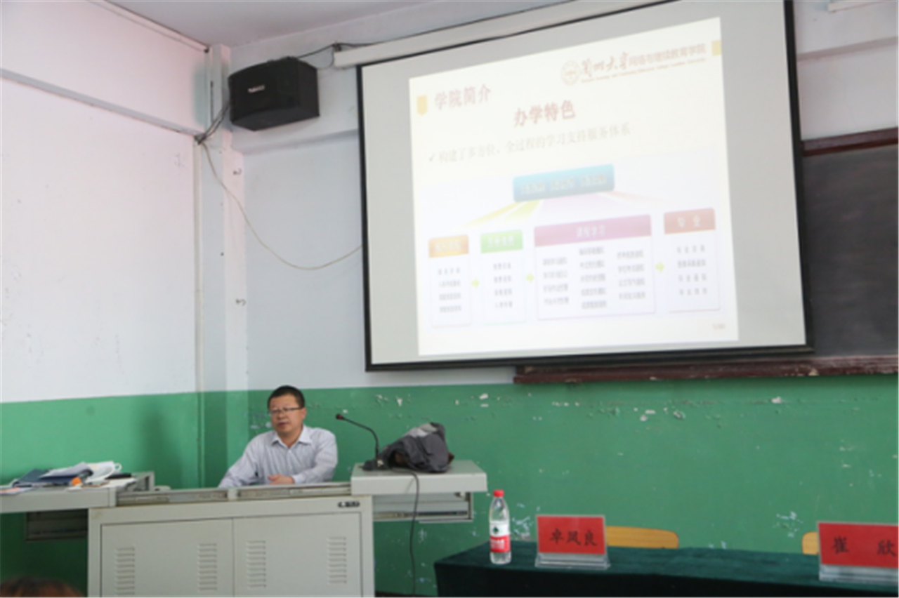 最后,冉繁軍主任為新生進行了入學(xué)教育培訓(xùn),介紹了蘭大網(wǎng)絡(luò)教育中的學(xué)院管理規(guī)定、網(wǎng)絡(luò)學(xué)習(xí)規(guī)程以及網(wǎng)上學(xué)習(xí)平臺的使用方法。