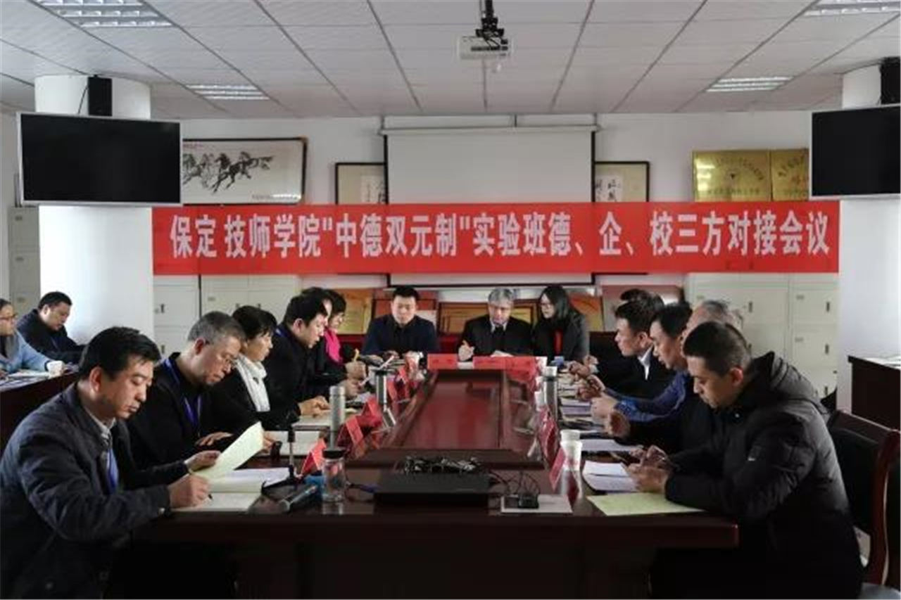 為更好地服務(wù)津京冀一體化和雄安新區(qū)建設(shè),培養(yǎng)更多智能制造人才,促使眾多中德制造業(yè)企業(yè)聯(lián)姻,學(xué)院多次邀請(qǐng)德國職教專家烏沃·海博博士來我院進(jìn)行師資培訓(xùn)。3月13日,學(xué)院再次邀請(qǐng)海博博士及保定部分知名企業(yè)家來我院參加 “中德雙元制”教學(xué)實(shí)驗(yàn)班德、企、校三方對(duì)接會(huì)。為更好地服務(wù)津京冀一體化和雄安新區(qū)建設(shè),培養(yǎng)更多智能制造人才,促使眾多中德制造業(yè)企業(yè)聯(lián)姻,學(xué)院多次邀請(qǐng)德國職教專家烏沃·海博博士來我院進(jìn)行師資培訓(xùn)。3月13日,學(xué)院再次邀請(qǐng)海博博士及保定部分知名企業(yè)家來我院參加 “中德雙元制”教學(xué)實(shí)驗(yàn)班德、企、校三方對(duì)接會(huì)。為更好地服務(wù)津京冀一體化和雄安新區(qū)建設(shè),培養(yǎng)更多智能制造人才,促使眾多中德制造業(yè)企業(yè)聯(lián)姻,學(xué)院多次邀請(qǐng)德國職教專家烏沃·海博博士來我院進(jìn)行師資培訓(xùn)。3月13日,學(xué)院再次邀請(qǐng)海博博士及保定部分知名企業(yè)家來我院參加 “中德雙元制”教學(xué)實(shí)驗(yàn)班德、企、校三方對(duì)接會(huì)。