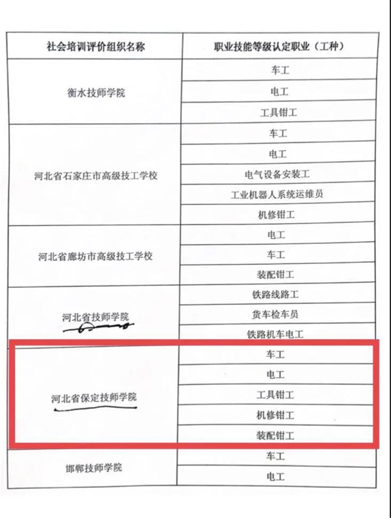 為貫徹落實(shí)黨中央、國務(wù)院關(guān)于“放管服”改革要求和《人力資源社會保障部關(guān)于改革完善技能人才評價(jià)制度的意見》等文件精神,依據(jù)省人社廳《關(guān)于征集首批職業(yè)技能等級認(rèn)定社會培訓(xùn)評價(jià)組織的通知》文件要求,我校第一時(shí)間組織相關(guān)人員進(jìn)行專項(xiàng)研討,結(jié)合我校近幾年發(fā)展方向以及我校在開展培訓(xùn)、評價(jià)工作方面的性質(zhì)優(yōu)勢、組織優(yōu)勢和專業(yè)優(yōu)勢等,積極開展申報(bào)工作。最終,我校成功入選河北省首批職業(yè)技能等級認(rèn)定社會培訓(xùn)評價(jià)組織,可面向社會提供車工、電工、工具鉗工、機(jī)修鉗工、裝配鉗工等職業(yè)技能等級認(rèn)定試點(diǎn)工作。