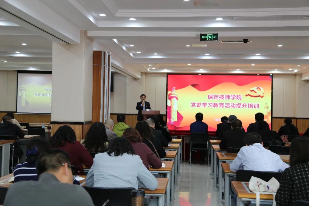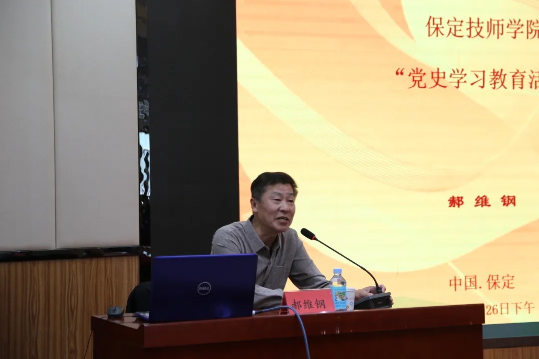 為深入學(xué)習(xí)領(lǐng)會習(xí)近平總書記2月20日在黨史學(xué)習(xí)教育動員大會上的重要講話精神,引導(dǎo)全院師生學(xué)史明理、學(xué)史增信、學(xué)史崇德、學(xué)史力行,4月26日,保定技師學(xué)院舉辦了黨史學(xué)習(xí)教育活動提升培訓(xùn)講座。學(xué)院特邀原共青團(tuán)天津市團(tuán)校、天津青年職業(yè)學(xué)院黨委書記(研究員),中國現(xiàn)代史研究會理事,天津黨史研究會理事,天津市高職高專精品課評估專家郝維鋼作了題為《學(xué)史明理、學(xué)史增信、學(xué)史崇德、學(xué)史力行》的講座。講座由學(xué)院黨委副書記劉濟(jì)新主持,全體黨員、干部和學(xué)生代表參加了講座。